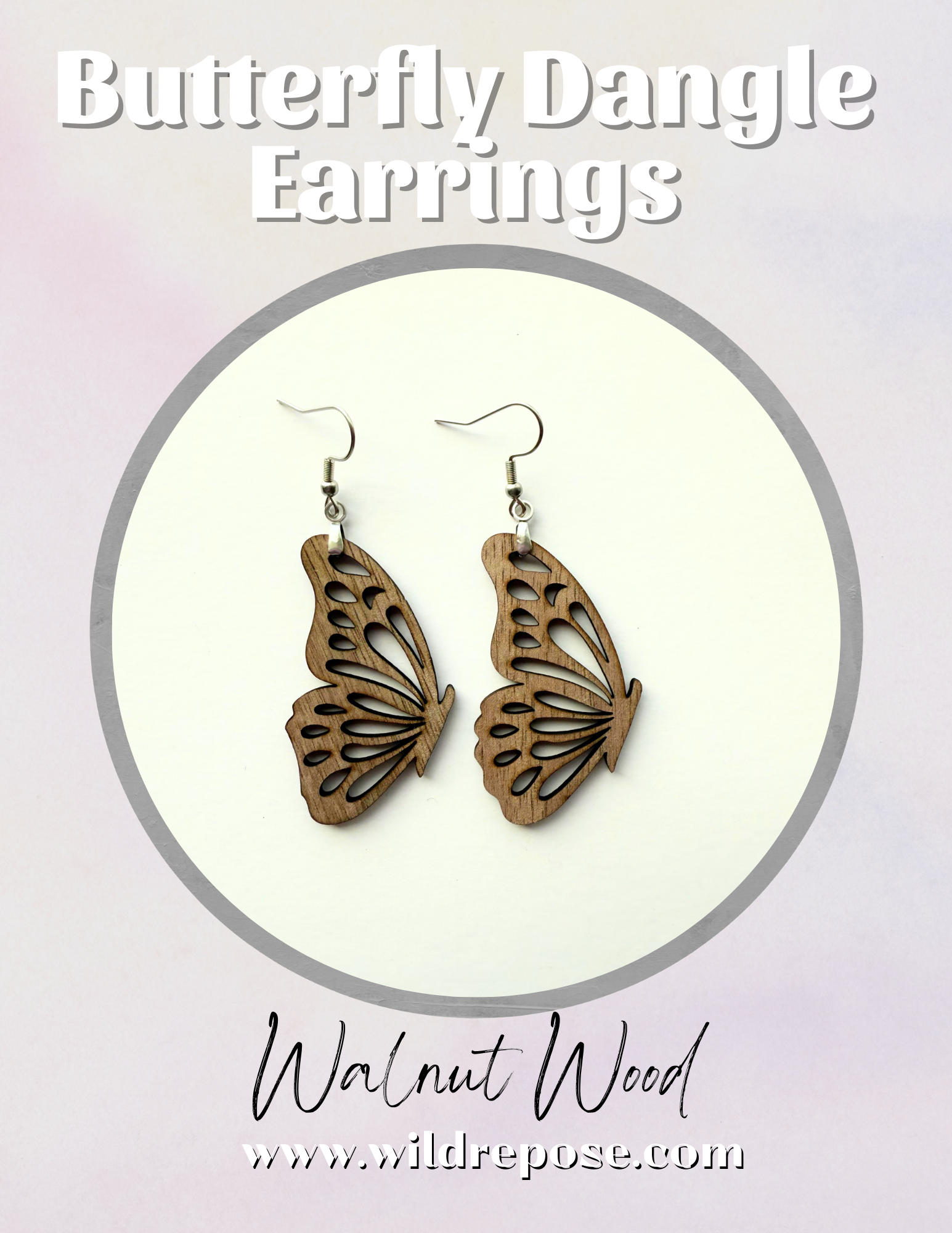 Butterfly Walnut Wood Earrings – Hypoallergenic Stainless Steel Hooks