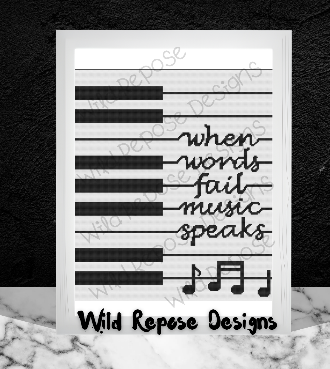 Example Swatch is 3 3/8” wide x 3 7/8” tall (8.5 cm x 10 cm) -More tall than wide MUSIC SPEAKS – 180x200 APPROX. FINISHED SIZE 61” x 77” |
