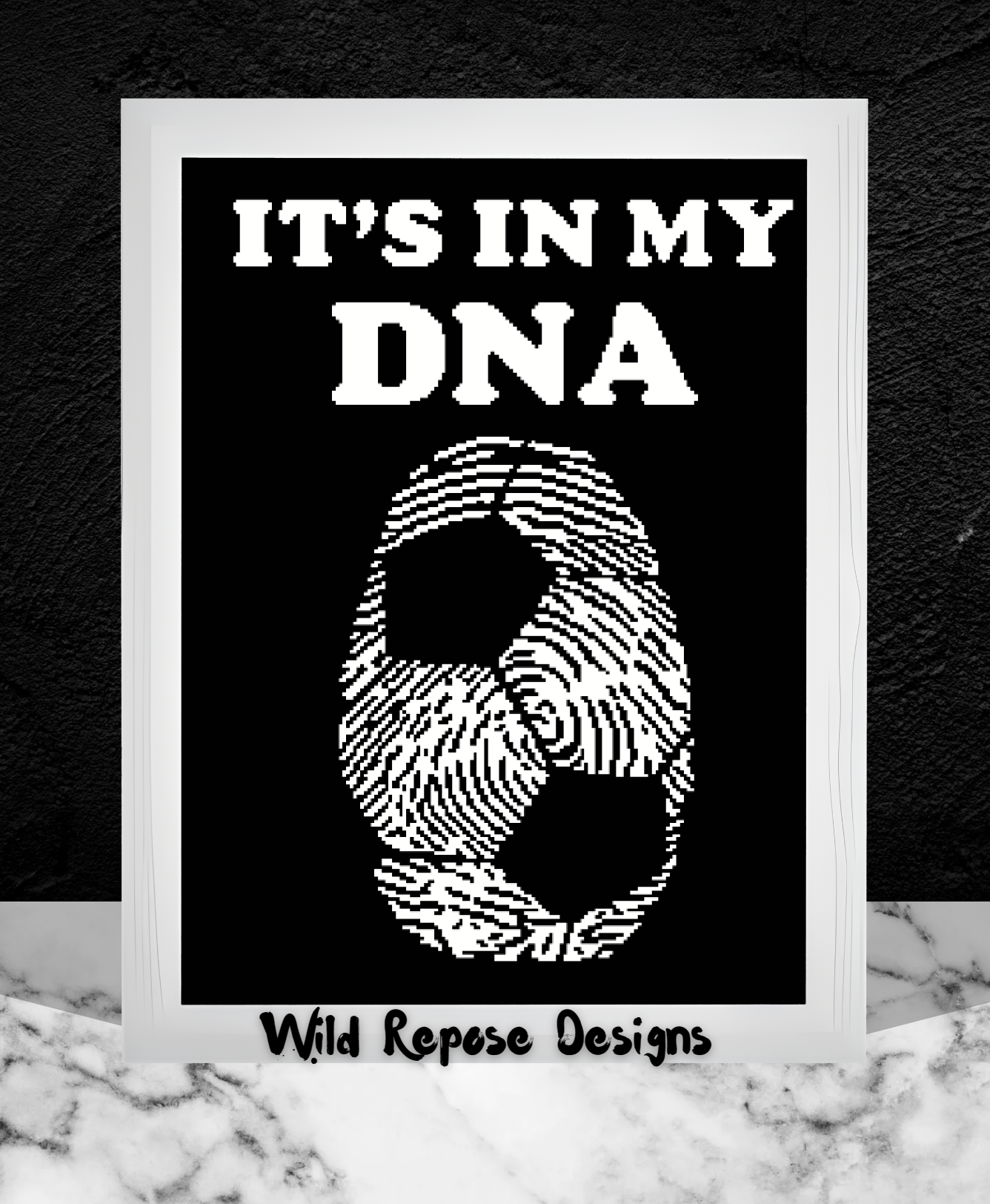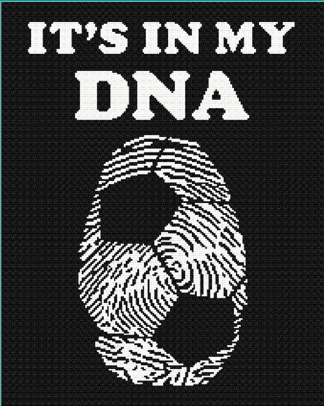 Example Swatch is 3 5/8” wide x 3 3/4” tall (9 cm x 9.5 cm) -almost the same width and height. SOCCER DNA – 192x240 APPROX. FINISHED SIZE 69” x 90” |