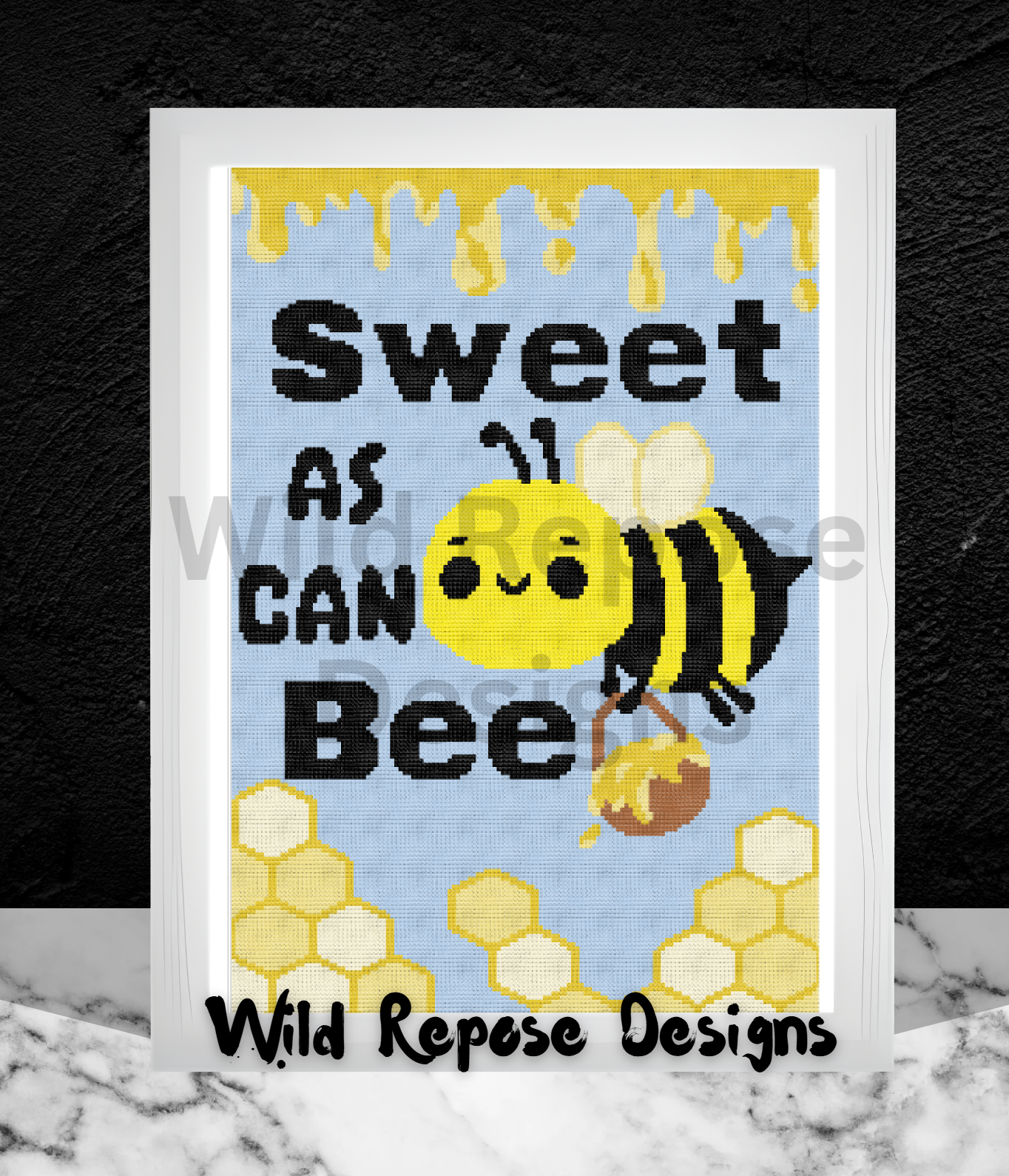 Example Swatch is 3” wide x 2 5/8” tall (7.5 cm x 7 cm) - a little more wide than tall. Sweet as can Bee – 144x216 APPROX. FINISHED SIZE 43” x 57” |